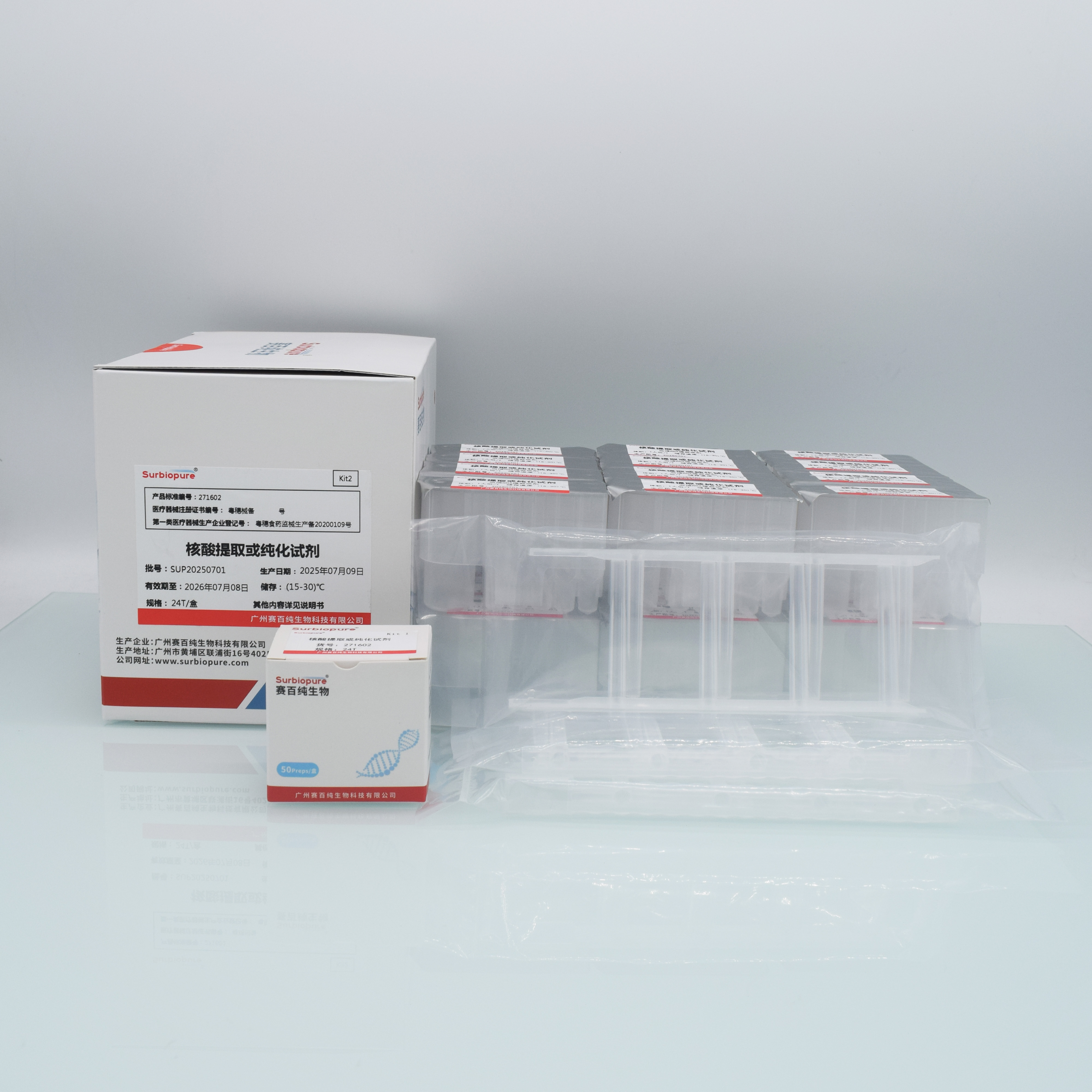 廣州賽百純生物科技有限公司總部坐落于廣州生物科研重鎮-中新知識城,是一家集研發、生產、銷售、客戶服務為一體的高科技生物技術公司。公司2023年被認定為國家“高新技術企業”、廣東省“專精特新中小企業”、“創新型中小企業”。目前公司自主研發的產品: 全自動核酸提取工作站、糞便自動化提取工作站、大體積核酸自動化工作站、全自動核酸提取儀、一次性采樣器、病毒核酸提取試劑盒、全血基因組DNA試劑盒、RNA提取試劑盒、糞便核酸提取試劑盒、游離DNA提取試劑盒、質粒DNA提取試劑盒,DNA產物純化和膠回收試劑盒、磁珠和離心柱等核酸全系列產品線。